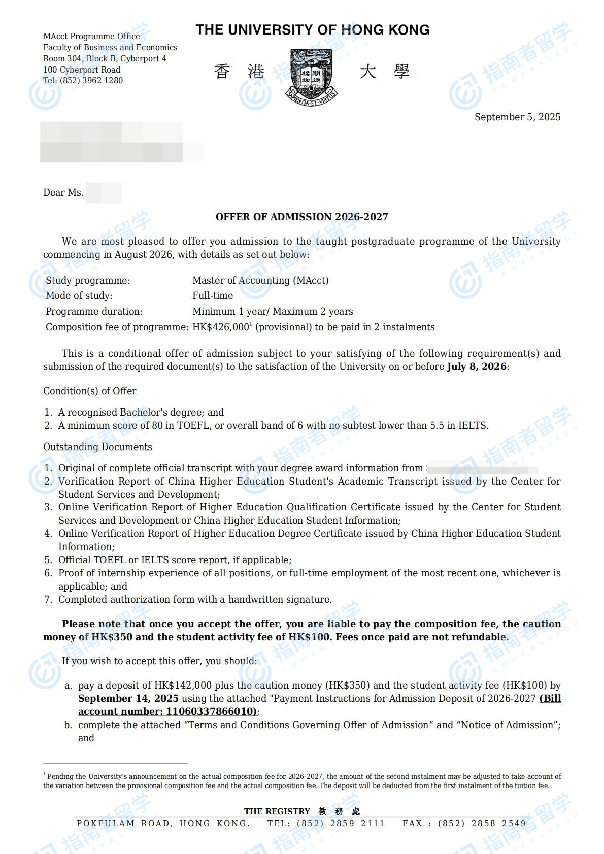 香港大學(xué)會計(jì)學(xué)碩士研究生offer一枚