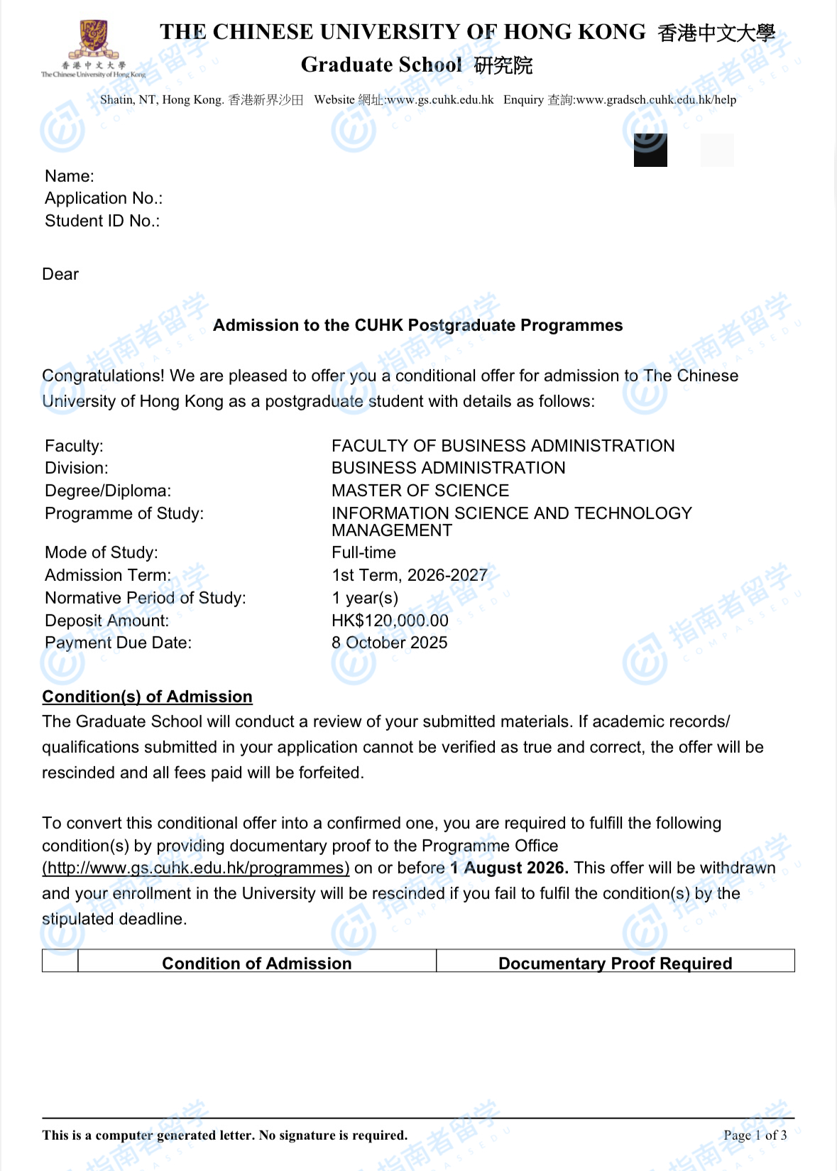 香港中文大學(xué)信息科學(xué)與技術(shù)管理理學(xué)碩士研究生offer一枚