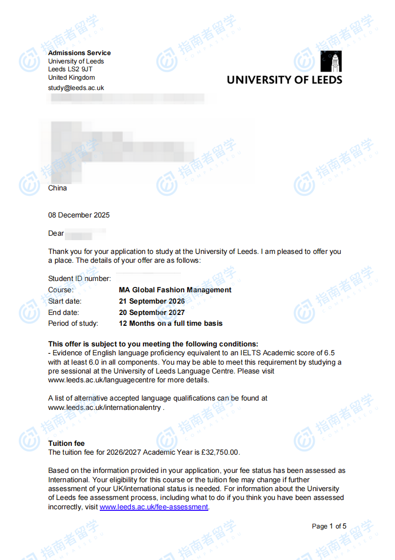 利茲大學(xué)全球時尚管理文學(xué)碩士研究生offer一枚