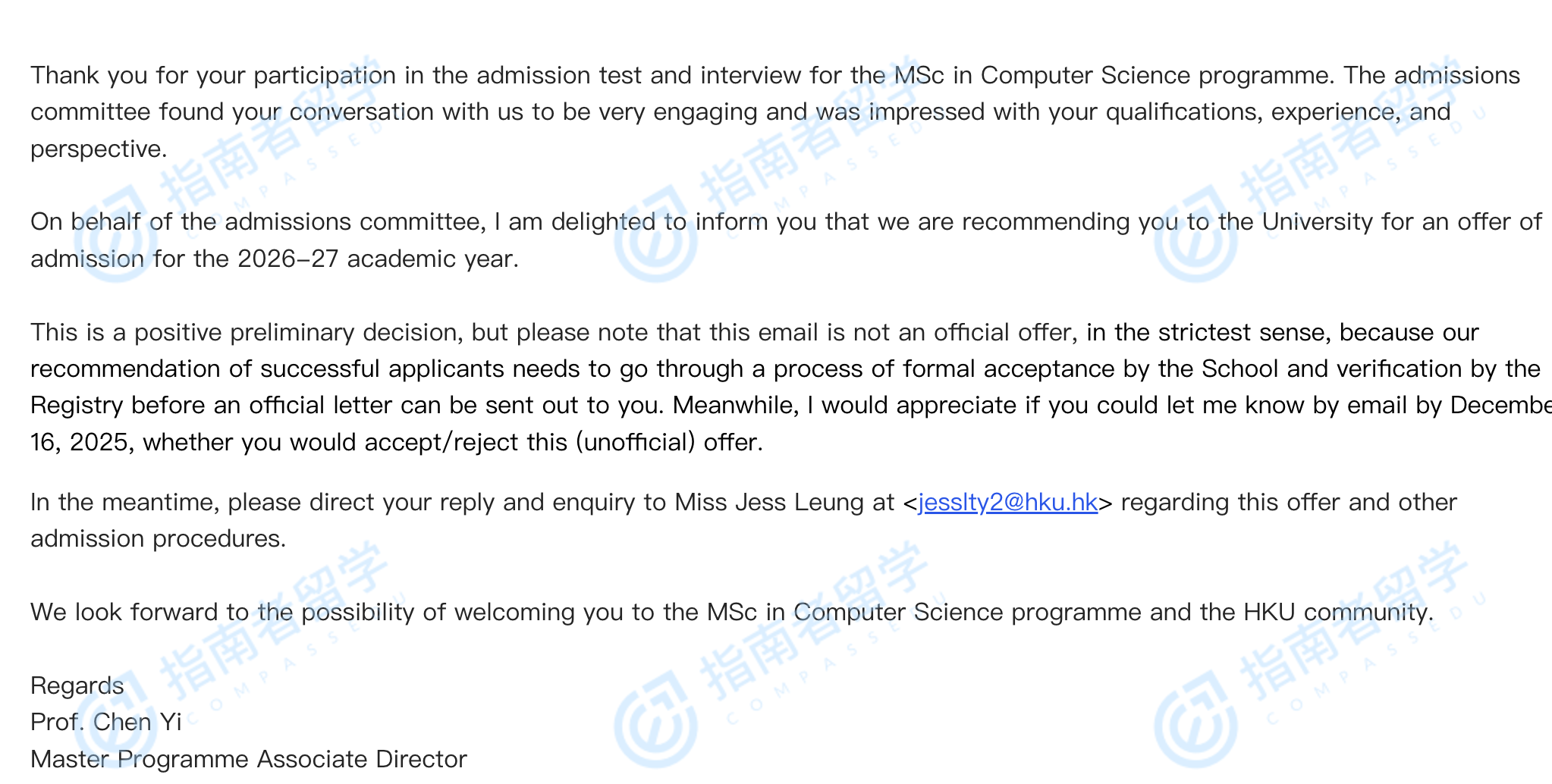 香港大學計算機科學理學碩士(網絡安全方向)研究生offer一枚