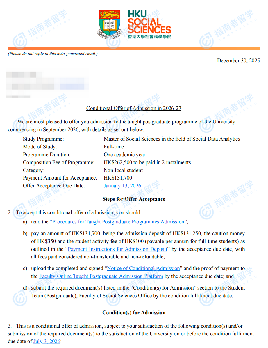 香港大學(xué)社會(huì)數(shù)據(jù)分析社會(huì)科學(xué)碩士研究生offer一枚