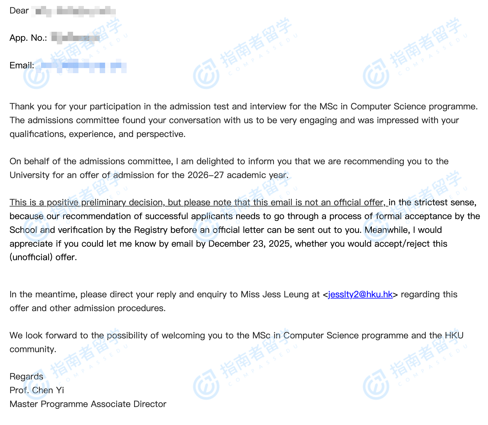 香港大學(xué)計(jì)算機(jī)科學(xué)理學(xué)碩士(常規(guī)方向)研究生offer一枚