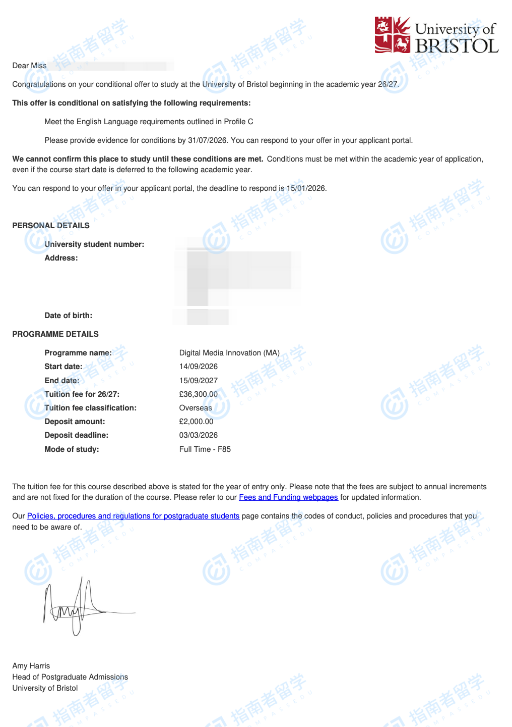 布里斯托大學(xué)數(shù)字媒體創(chuàng)新文學(xué)碩士研究生offer一枚