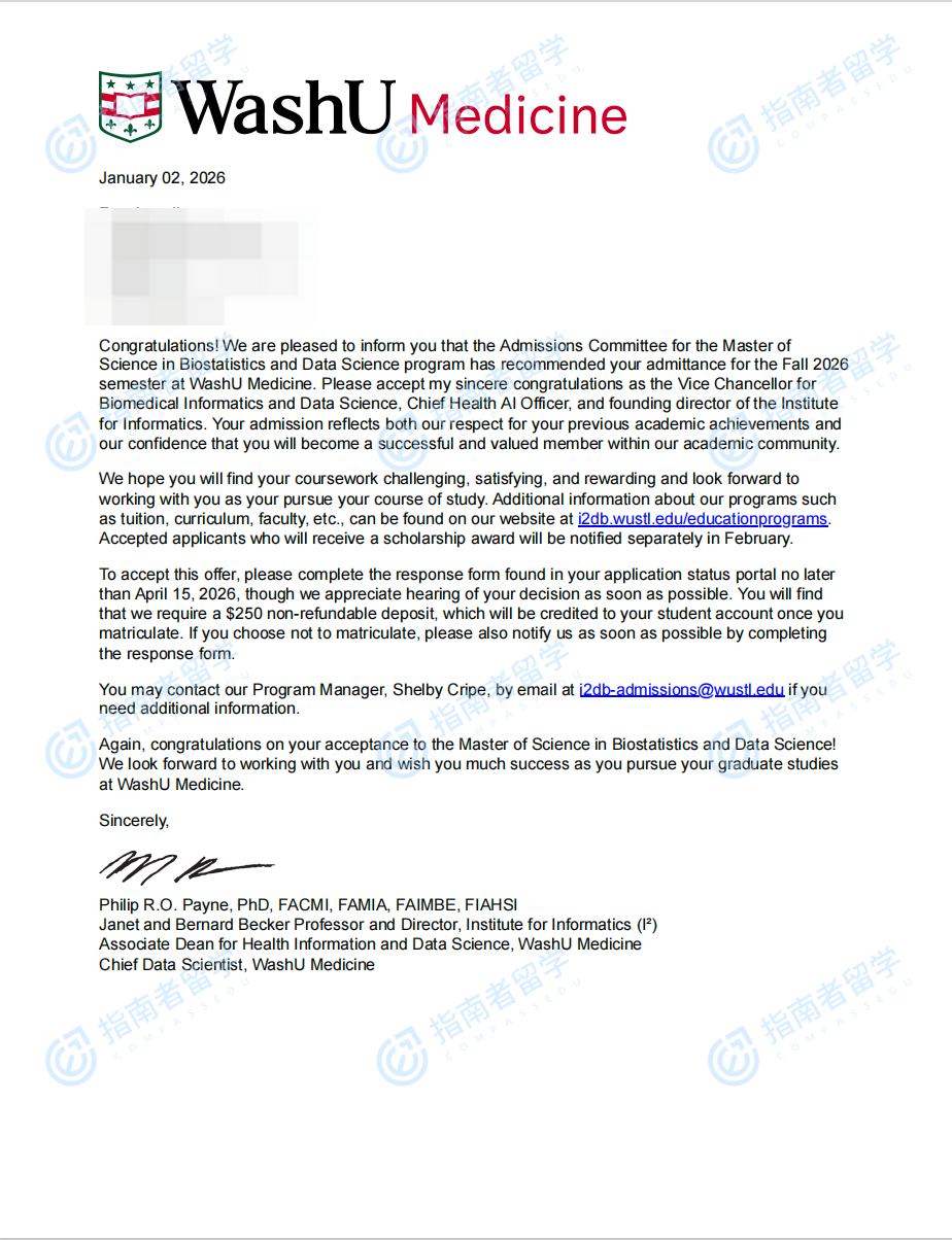圣路易斯華盛頓大學(xué)生物統(tǒng)計(jì)與數(shù)據(jù)科學(xué)理學(xué)碩士研究生offer一枚