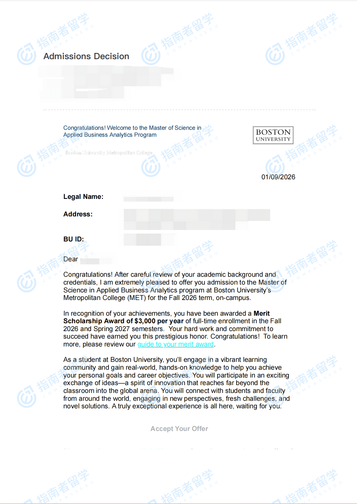 波士頓大學應(yīng)用商業(yè)分析碩士研究生offer一枚