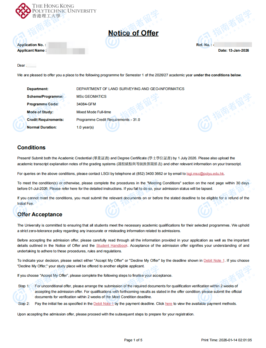 香港理工大學(xué)測(cè)繪及地理資訊學(xué)理學(xué)碩士研究生offer一枚