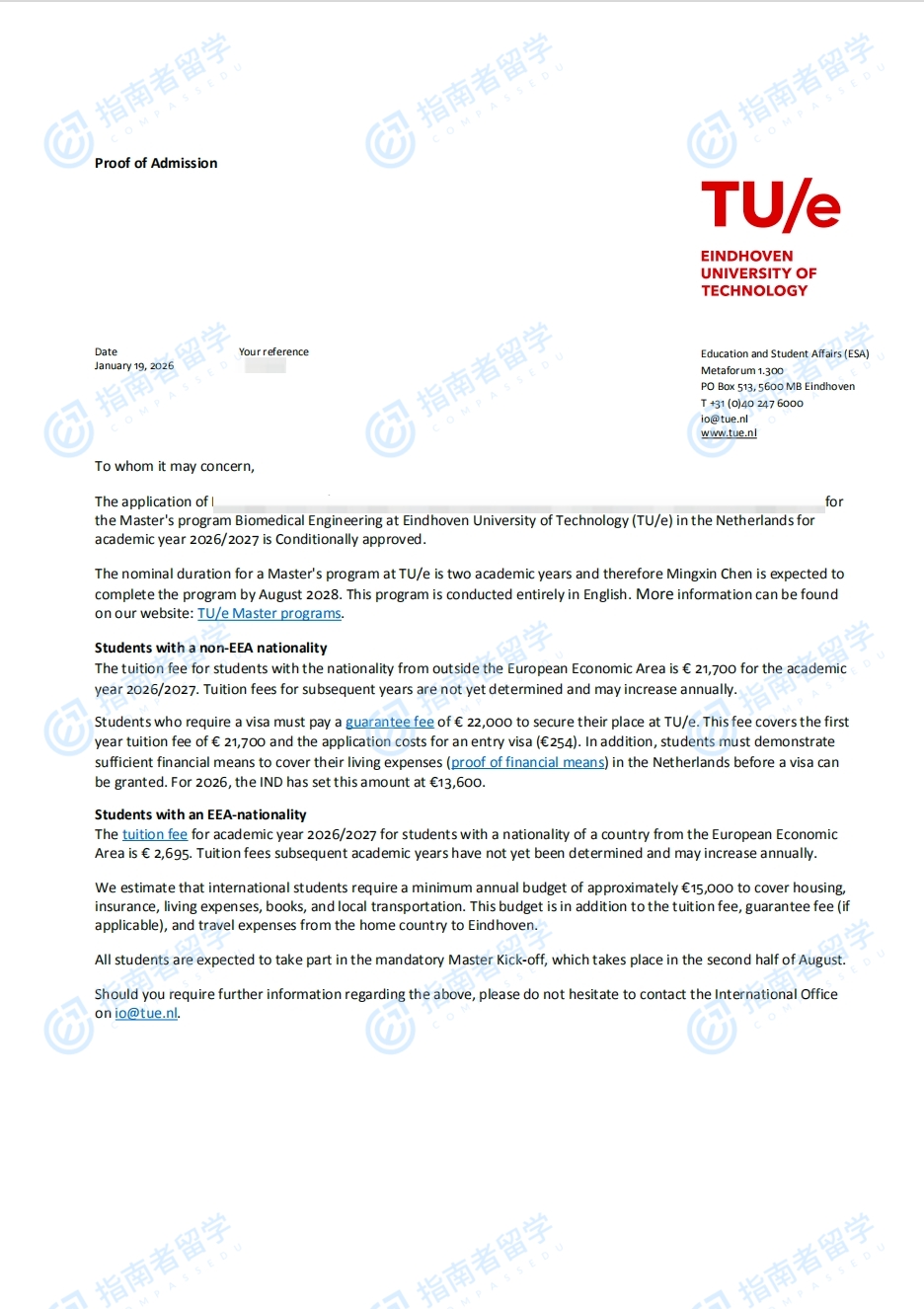 埃因霍芬理工大學(xué)生物醫(yī)學(xué)工程理學(xué)碩士研究生offer一枚