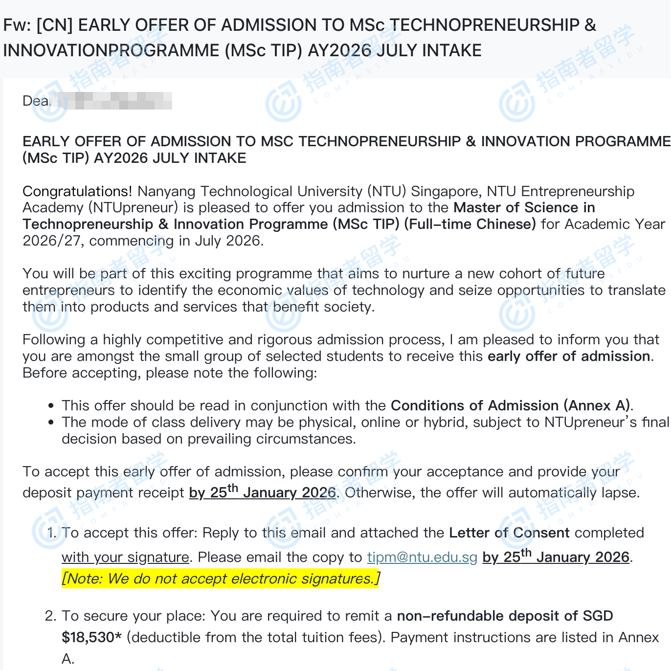 南洋理工大學(xué)科技創(chuàng)業(yè)與創(chuàng)新理學(xué)碩士(中文授課)研究生offer一枚