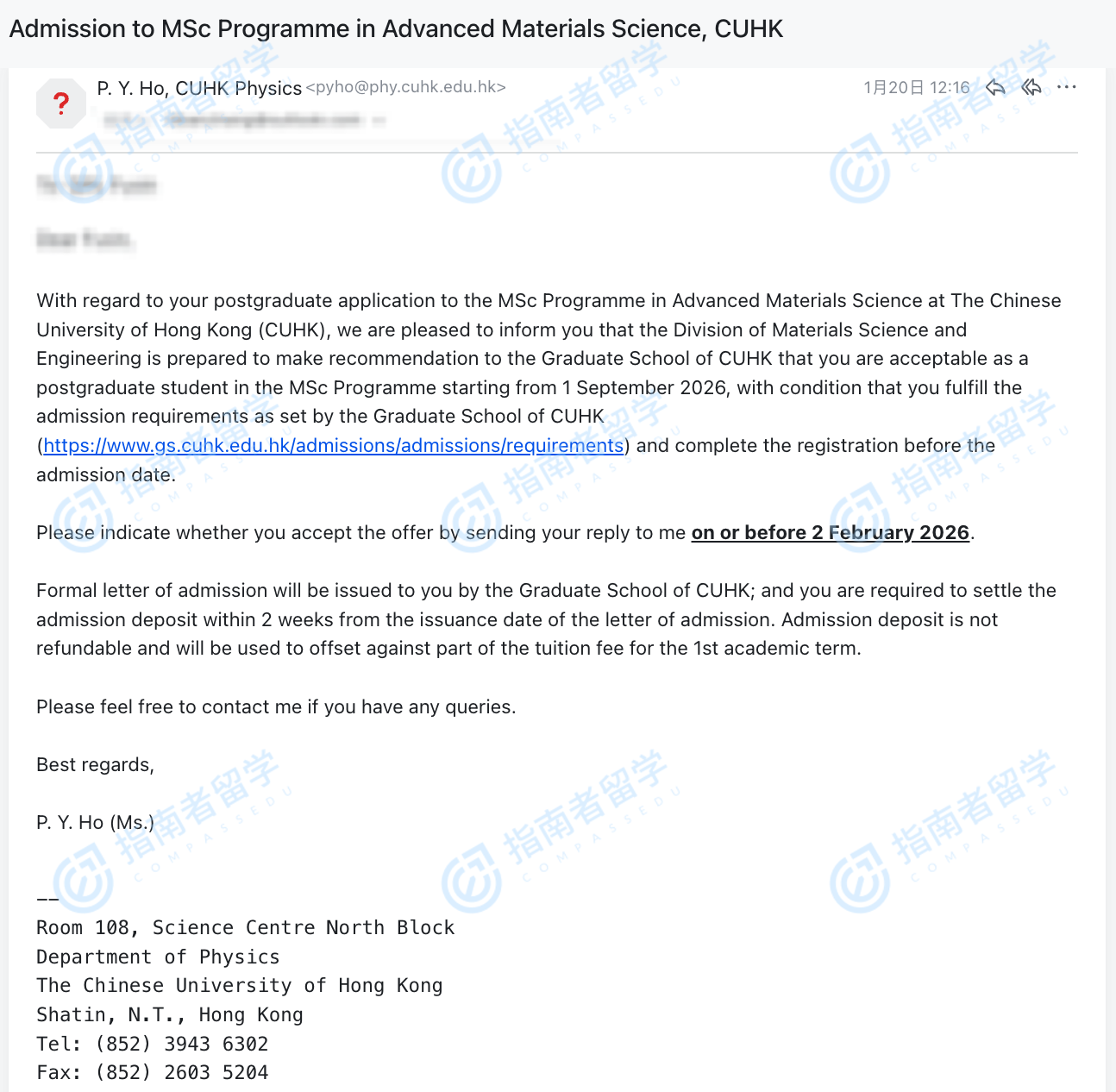 香港中文大學(xué)先進材料科學(xué)理學(xué)碩士研究生offer一枚