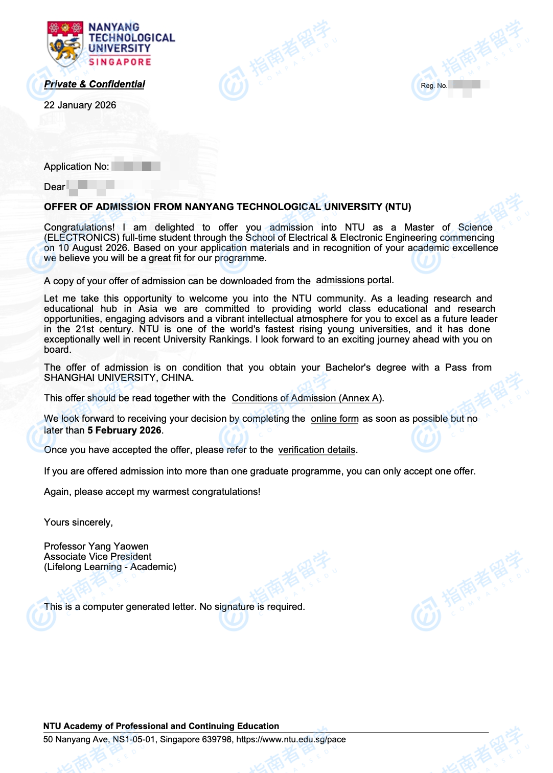 南洋理工大學(xué)電子學(xué)理學(xué)碩士研究生offer一枚