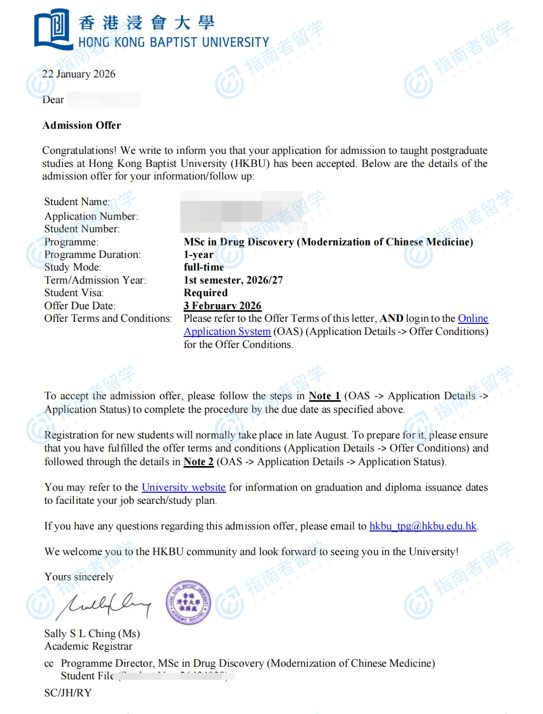香港浸會大學(xué)藥物發(fā)現(xiàn)(中藥現(xiàn)代化)理學(xué)碩士研究生offer一枚