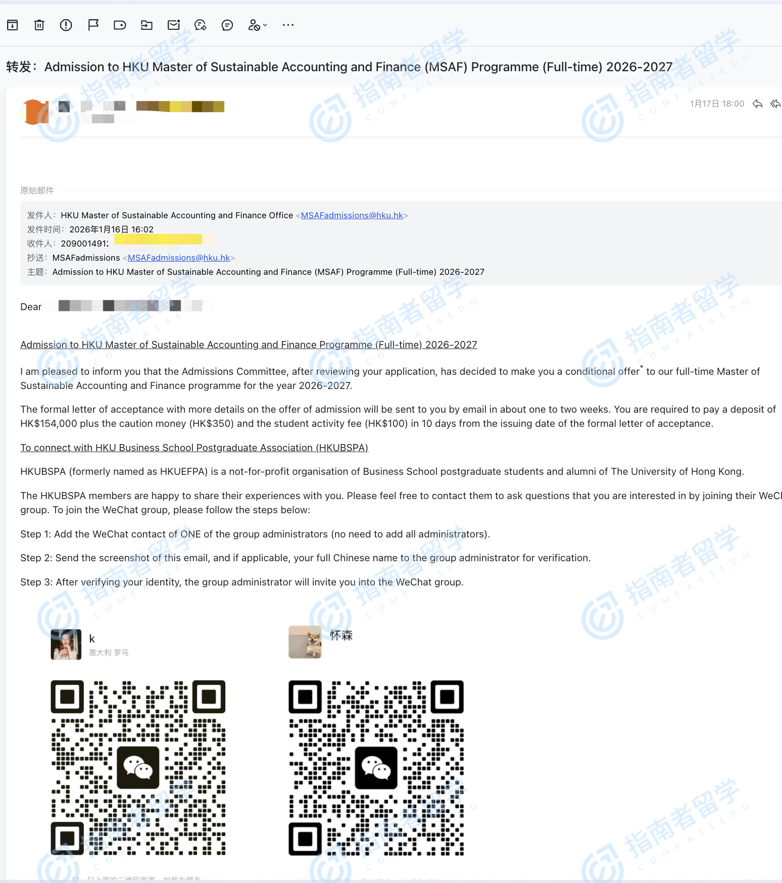 香港大學(xué)可持續(xù)會計及金融碩士研究生offer一枚