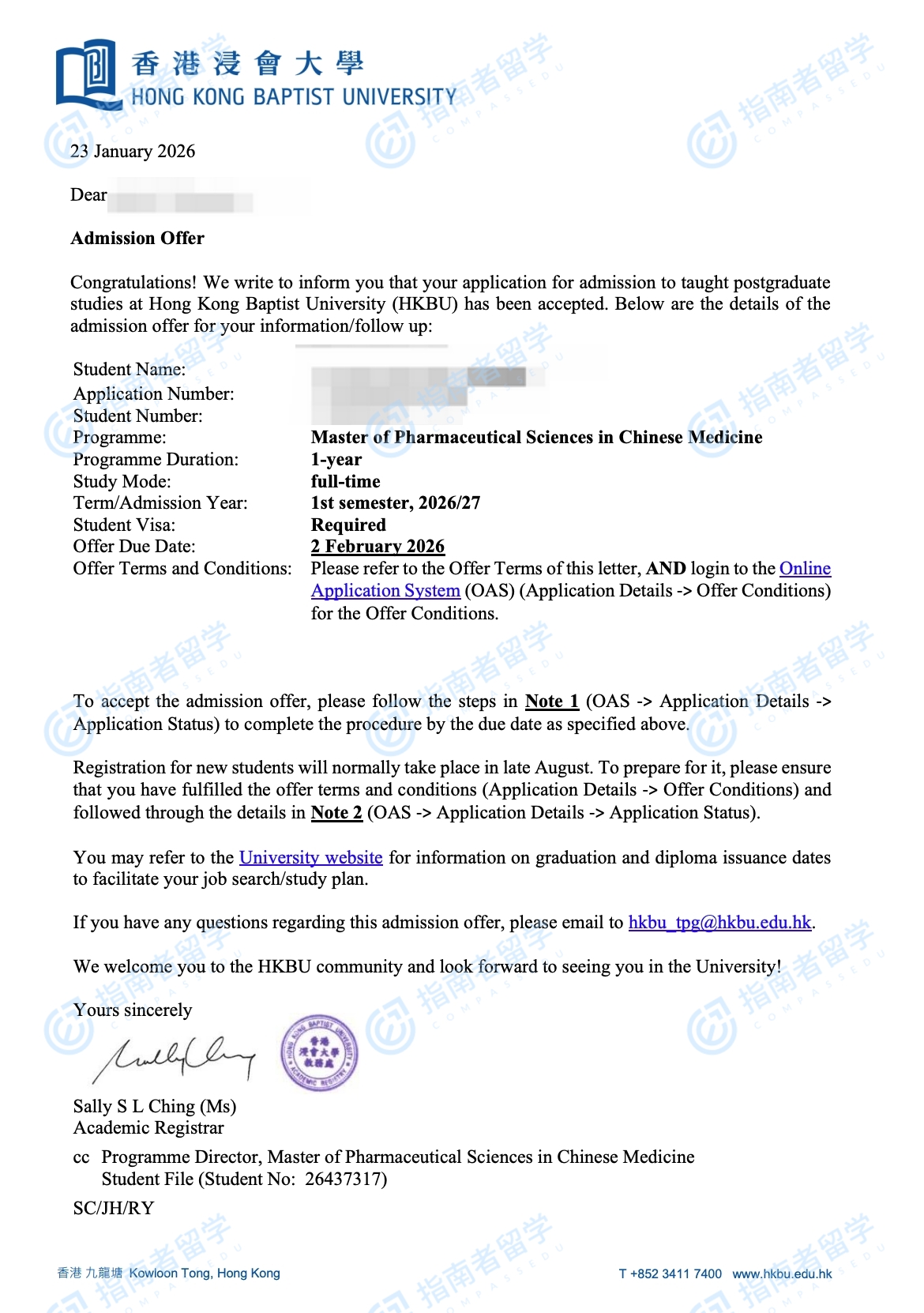 香港浸會(huì)大學(xué)中藥學(xué)碩士研究生offer一枚