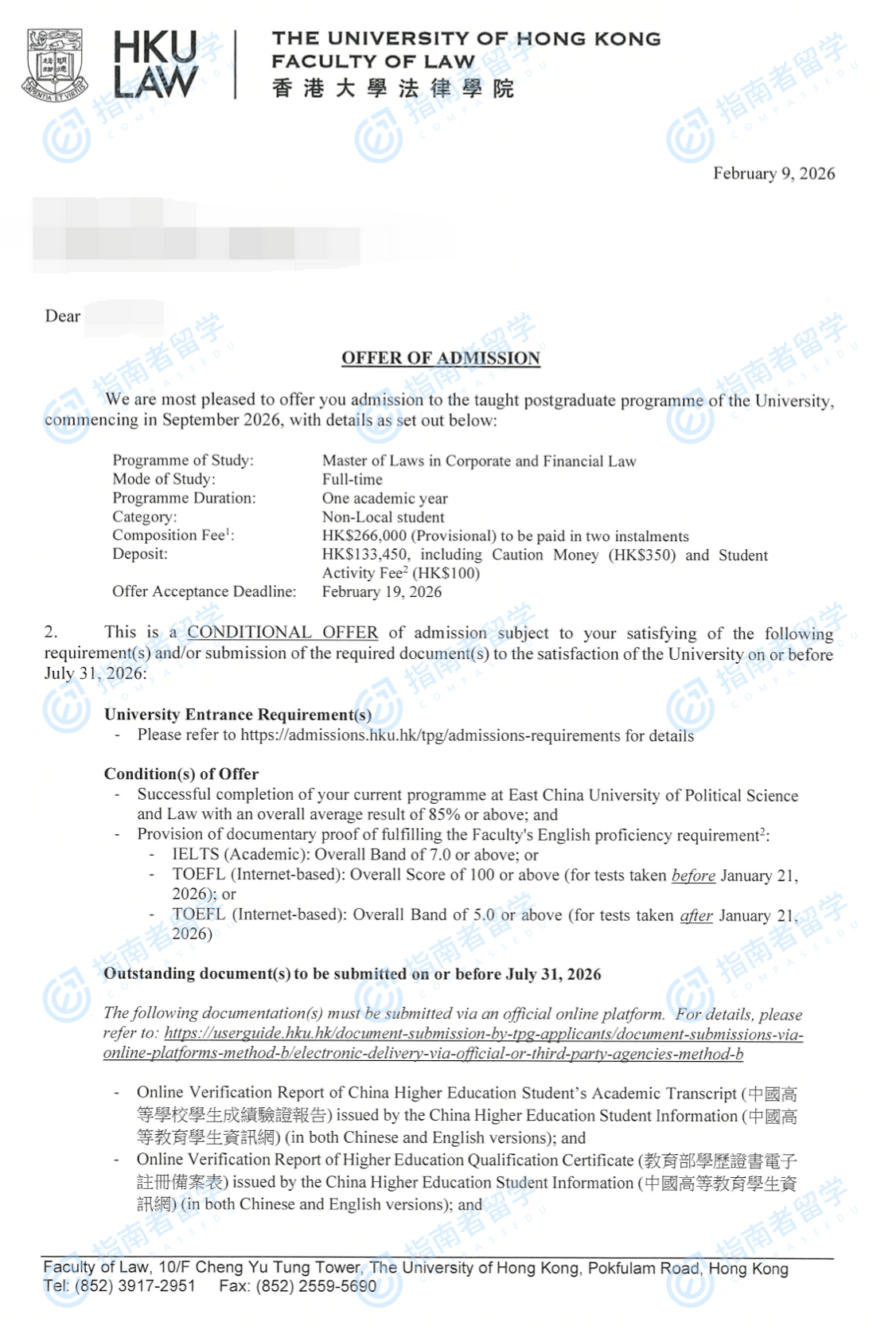 香港大學企業(yè)與金融法法學碩士研究生offer一枚