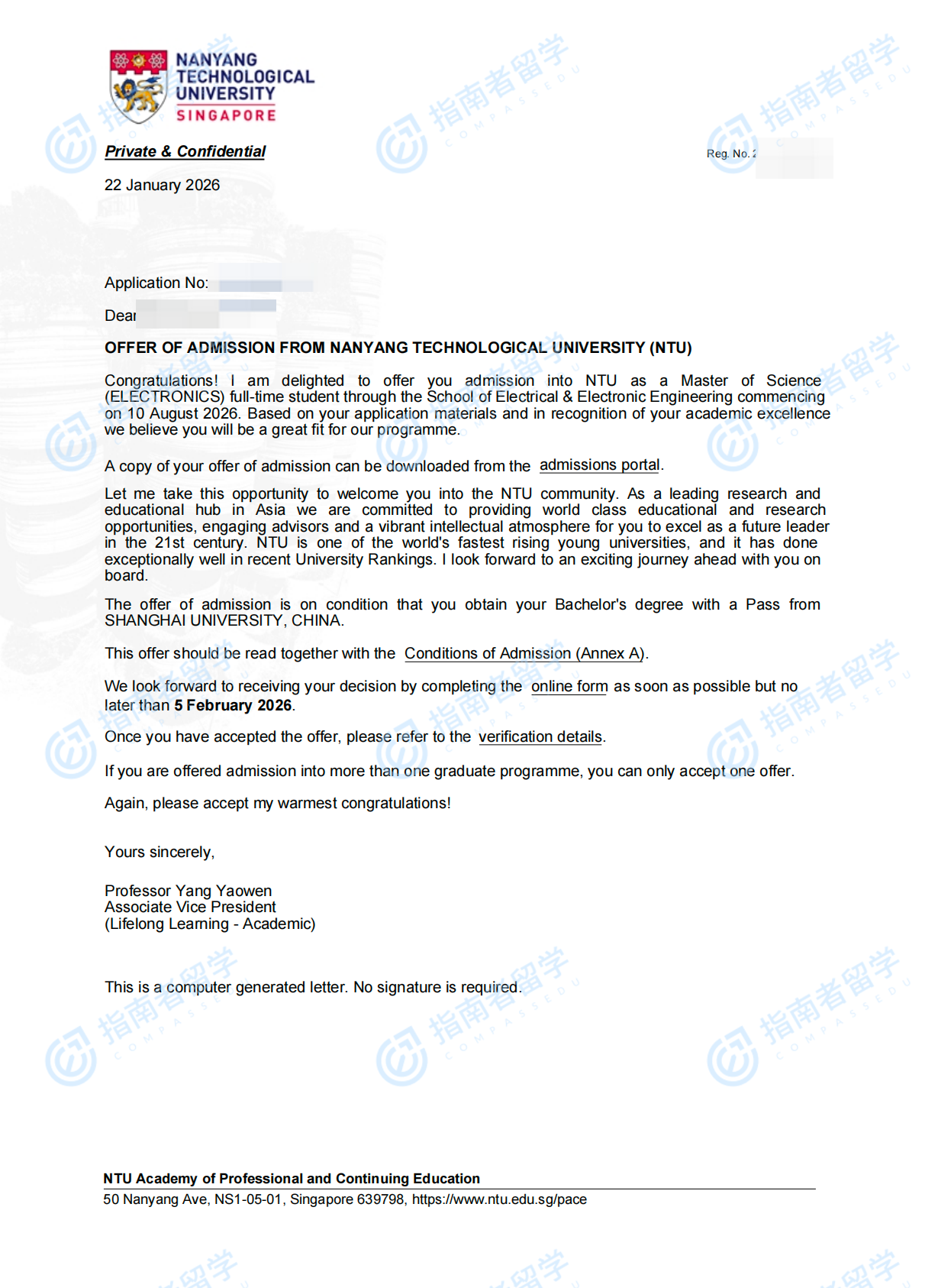 南洋理工大學機械工程理學碩士研究生offer一枚