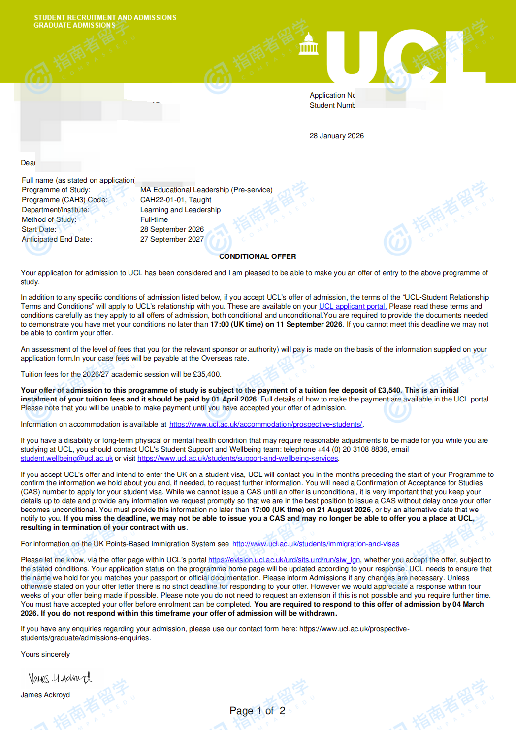 倫敦大學(xué)學(xué)院教育領(lǐng)導(dǎo)力文學(xué)碩士(面向無領(lǐng)導(dǎo)經(jīng)驗的申請者)研究生offer一枚