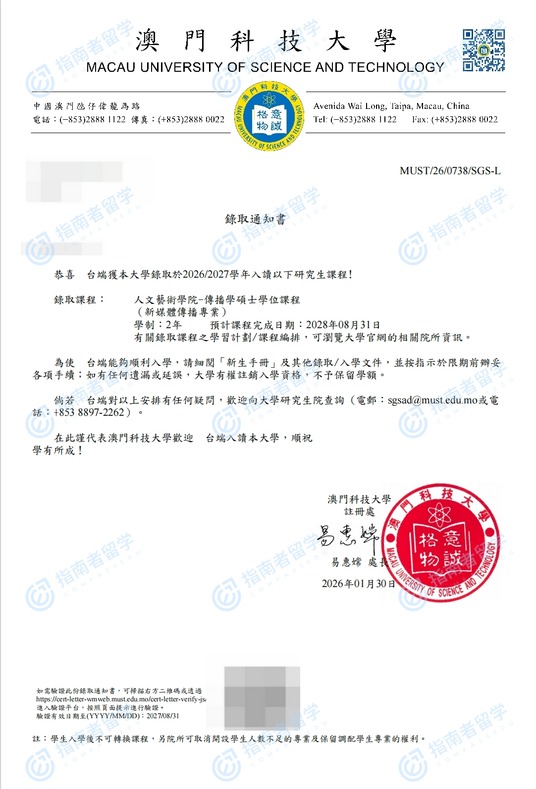 澳門科技大學(xué)傳播學(xué)碩士研究生offer一枚