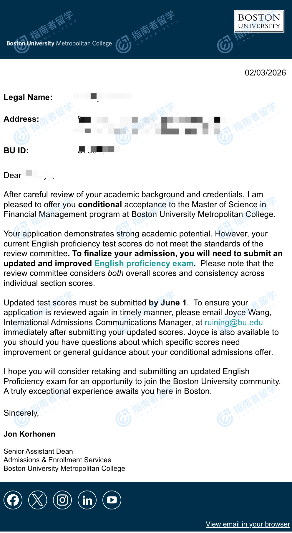 波士頓大學(xué)金融管理碩士研究生offer一枚