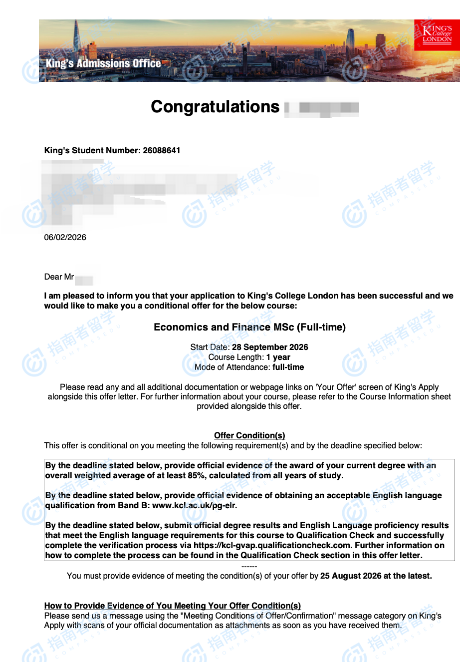 倫敦大學(xué)國(guó)王學(xué)院經(jīng)濟(jì)學(xué)與金融學(xué)理學(xué)碩士研究生offer一枚