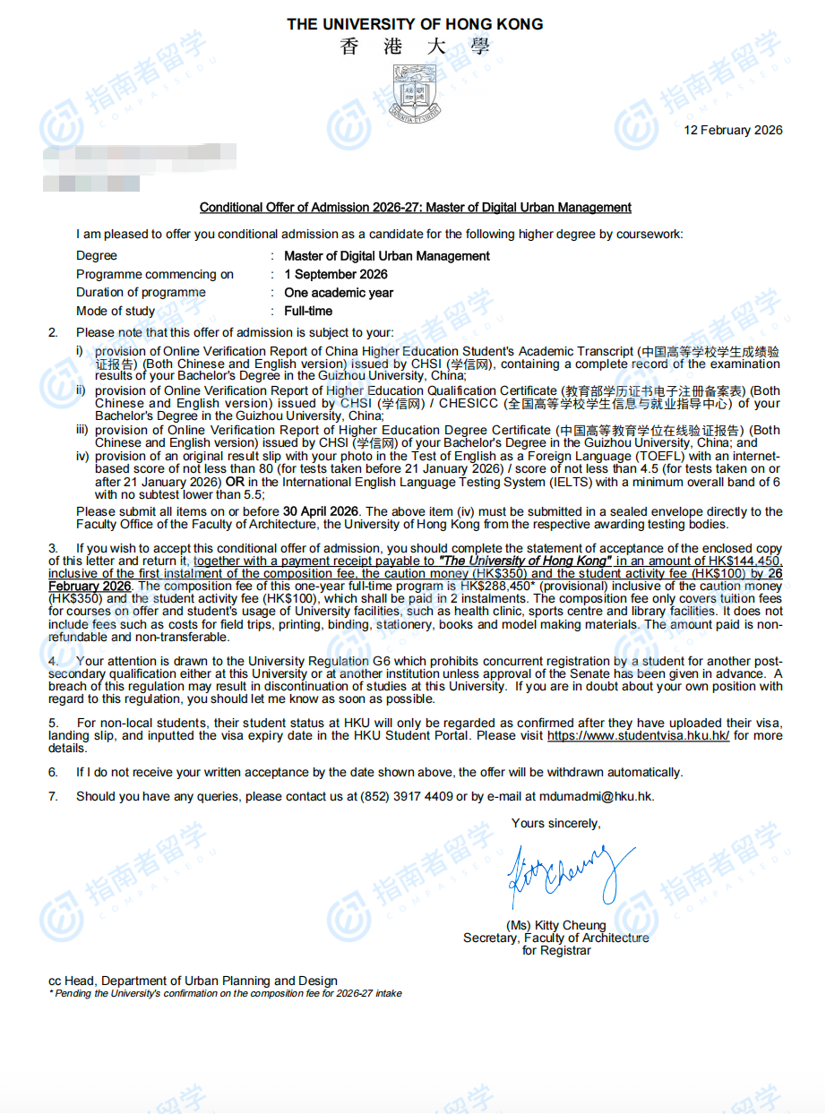 香港大學(xué)數(shù)字城市管理碩士研究生offer一枚