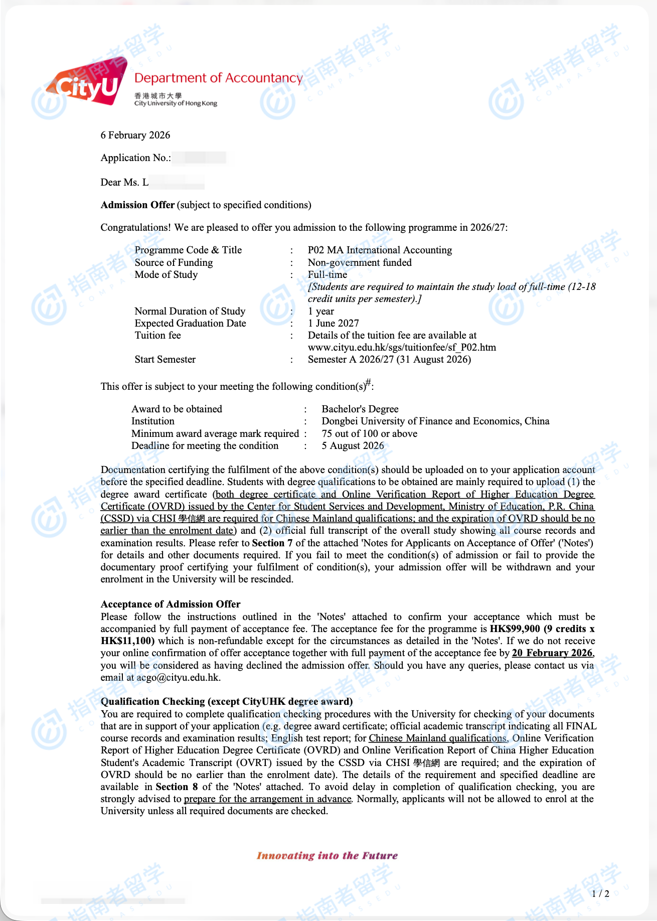 香港城市大學(xué)國(guó)際會(huì)計(jì)學(xué)文學(xué)碩士研究生offer一枚