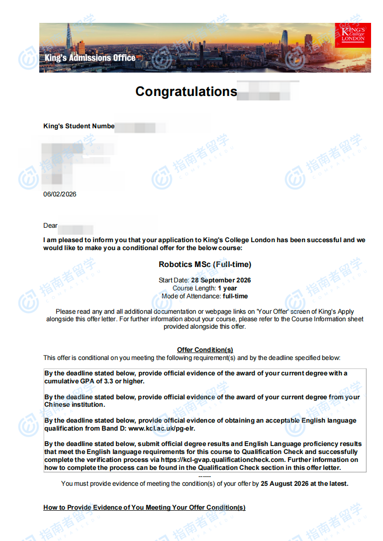 倫敦大學(xué)國王學(xué)院機器人學(xué)理學(xué)碩士研究生offer一枚