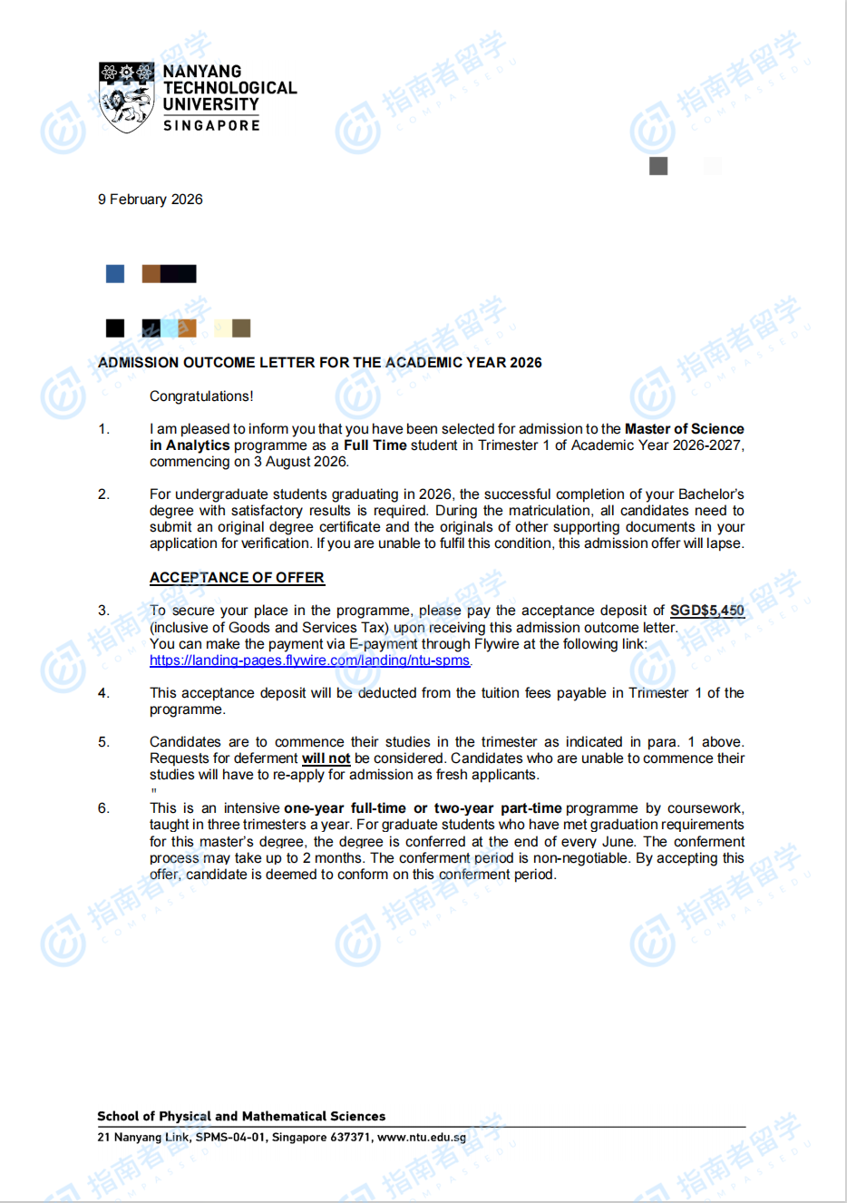 南洋理工大學(xué)分析學(xué)理學(xué)碩士研究生offer一枚
