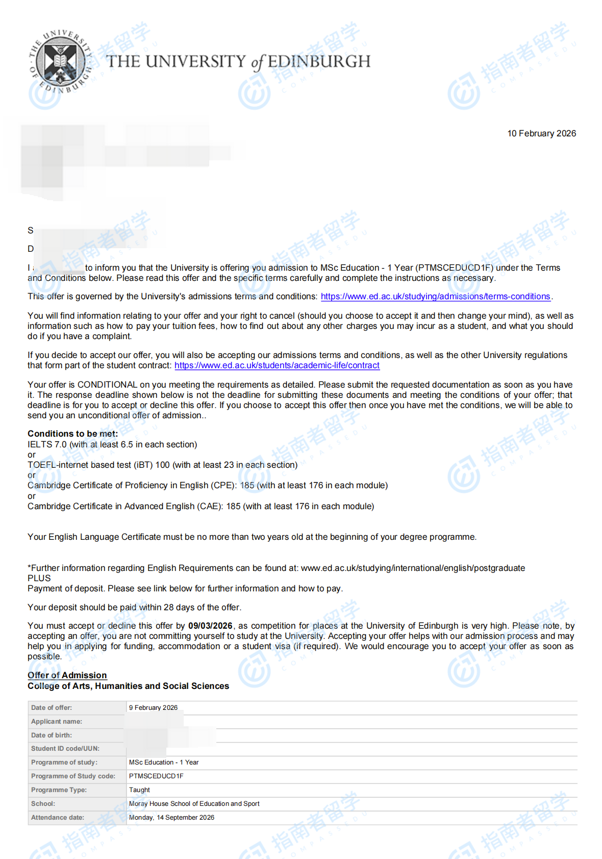 愛(ài)丁堡大學(xué)教育學(xué)理學(xué)碩士研究生offer一枚