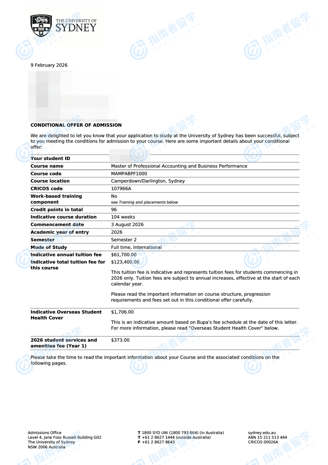 悉尼大學(xué)專業(yè)會(huì)計(jì)與商業(yè)績(jī)效碩士研究生offer一枚