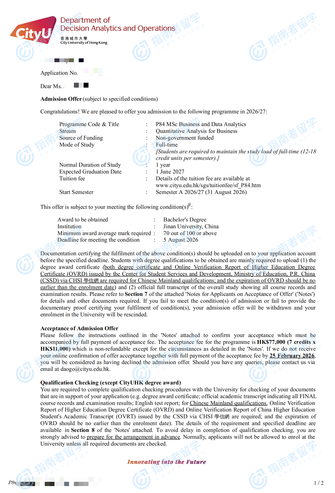 香港城市大學(xué)商業(yè)及數(shù)據(jù)分析理學(xué)碩士研究生offer一枚