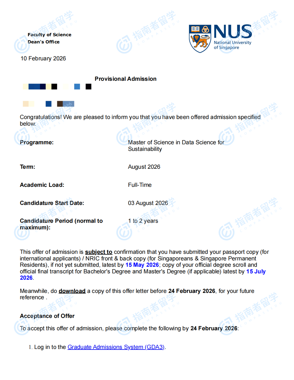 新加坡國(guó)立大學(xué)可持續(xù)發(fā)展數(shù)據(jù)科學(xué)理學(xué)碩士研究生offer一枚