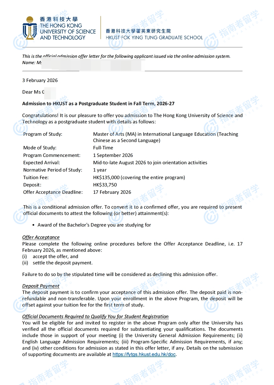香港科技大學(xué)國(guó)際語言教育文學(xué)碩士(對(duì)外漢語教學(xué))研究生offer一枚