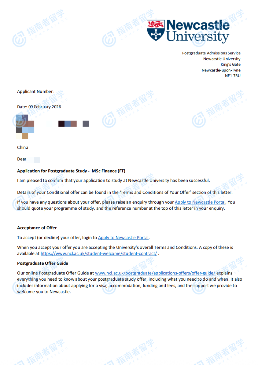 紐卡斯?fàn)柎髮W(xué)(英國)金融學(xué)理學(xué)碩士研究生offer一枚