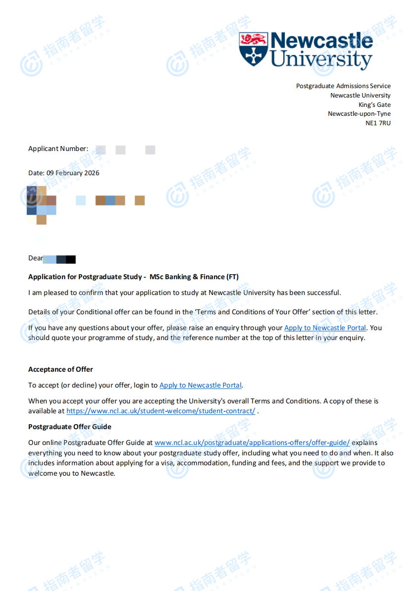 紐卡斯?fàn)柎髮W(xué)(英國)銀行與金融理學(xué)碩士研究生offer一枚