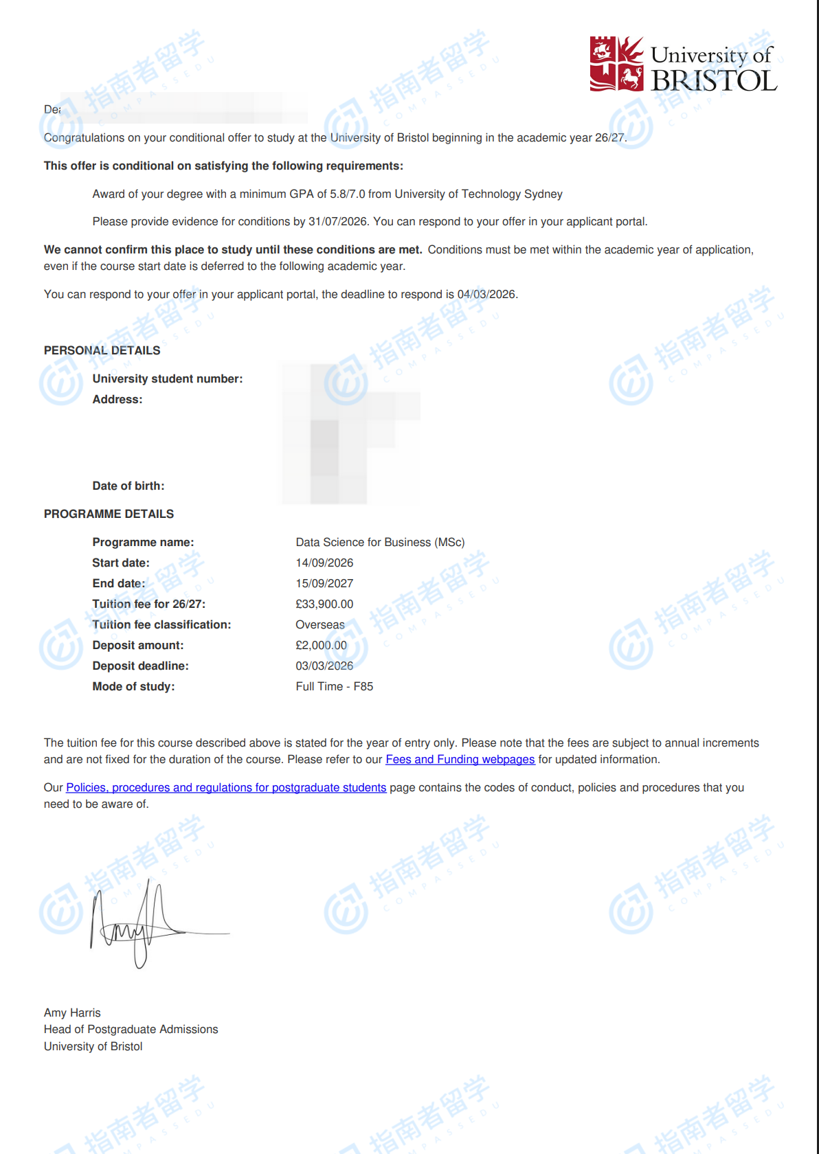 布里斯托大學(xué)商業(yè)數(shù)據(jù)科學(xué)理學(xué)碩士研究生offer一枚