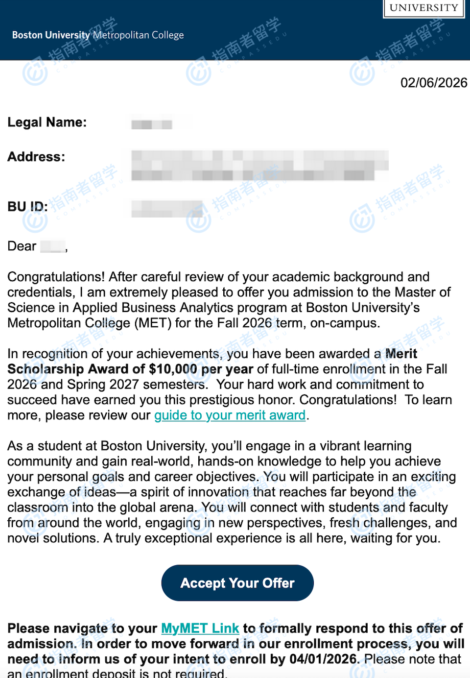 波士頓大學(xué)應(yīng)用商業(yè)分析碩士研究生offer一枚