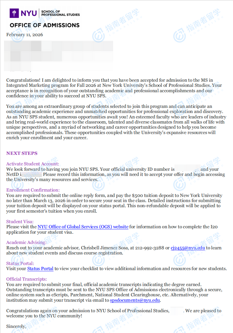 紐約大學(xué)整合營(yíng)銷碩士研究生offer一枚