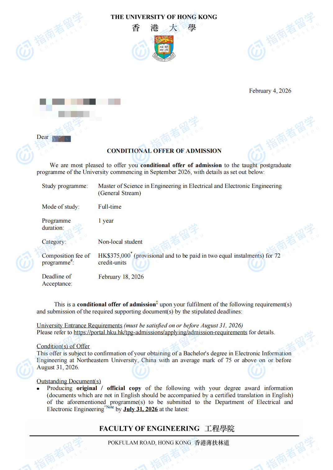 香港大學電氣與電子工程(工程)理學碩士 - 常規(guī)方向研究生offer一枚