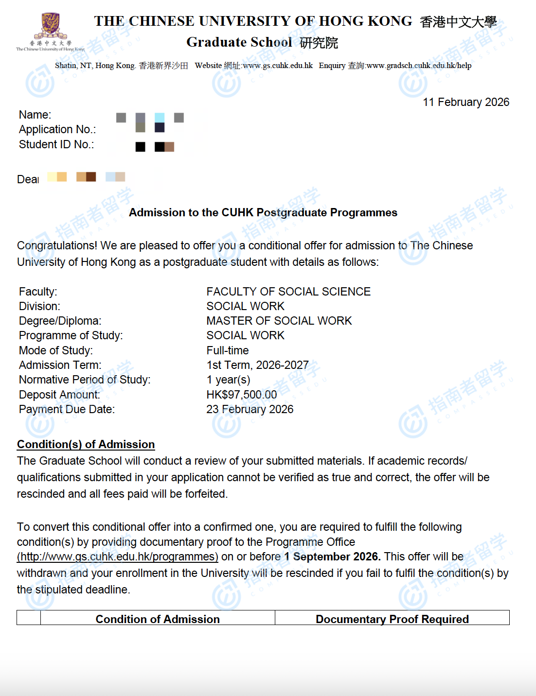 香港中文大學(xué)社會工作碩士研究生offer一枚