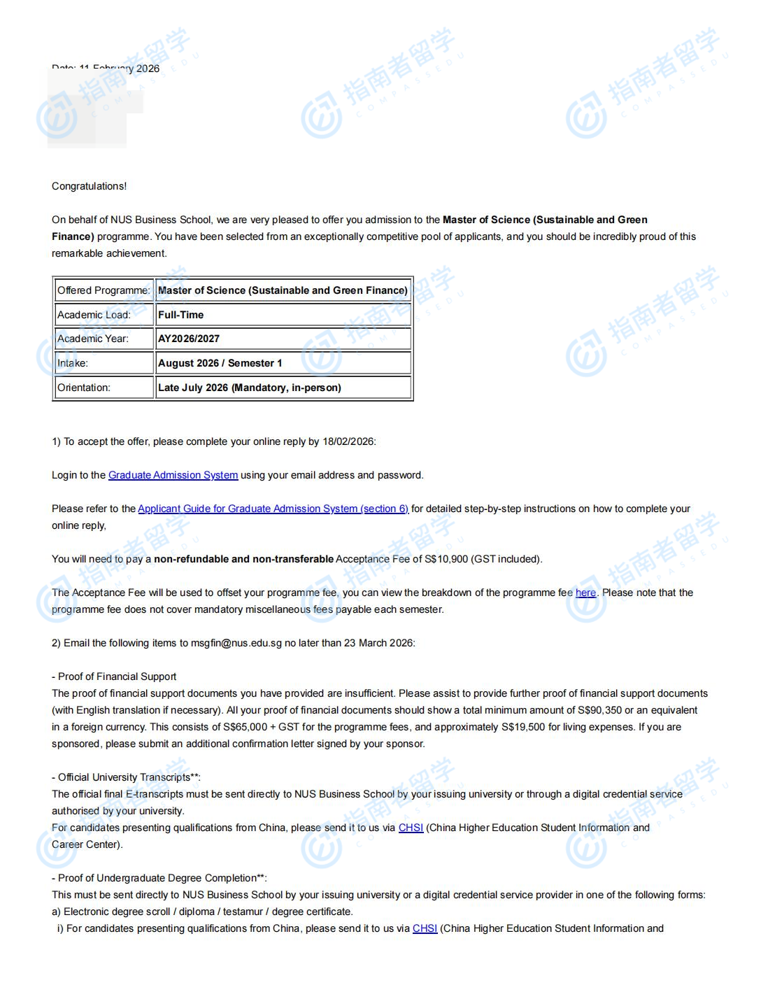 新加坡國立大學可持續(xù)與綠色金融理學碩士研究生offer一枚