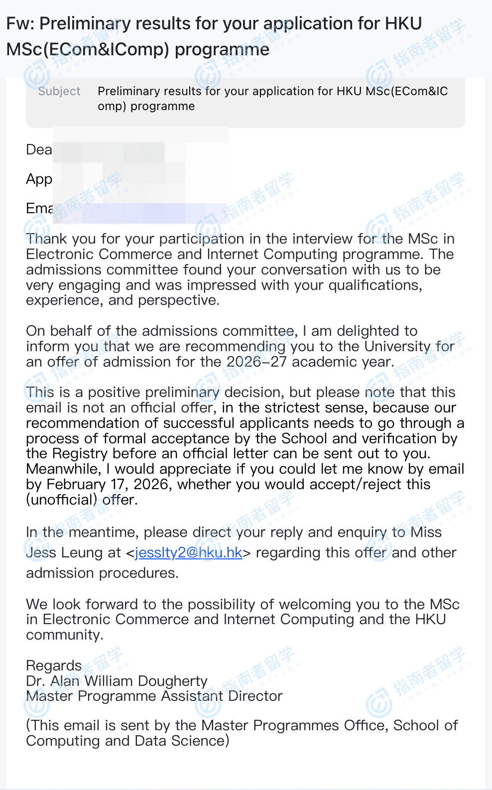 香港大學(xué)電子商貿(mào)及互聯(lián)網(wǎng)工程理學(xué)碩士研究生offer一枚
