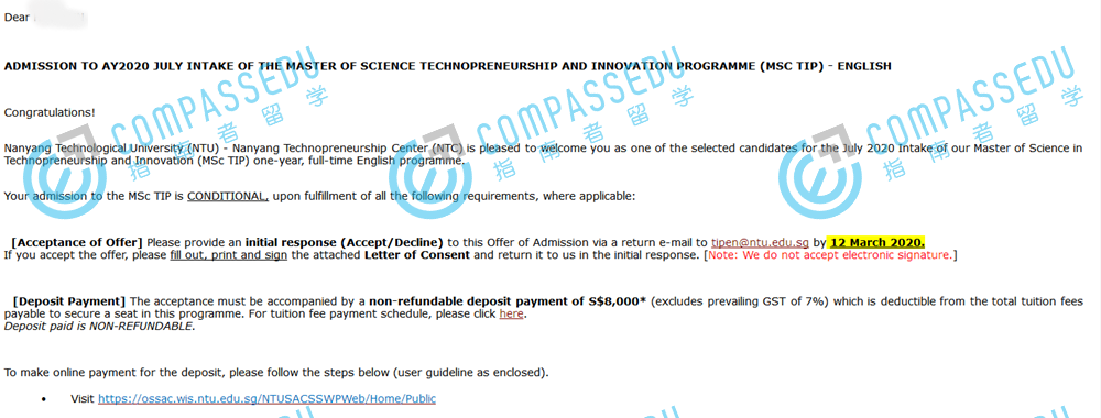 南洋理工大學(xué)科技創(chuàng)業(yè)與創(chuàng)新理學(xué)碩士(英文授課)研究生offer一枚