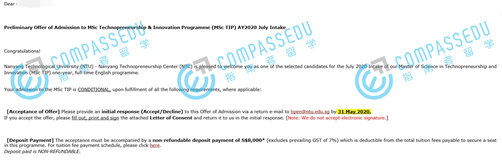南洋理工大學(xué)科技創(chuàng)業(yè)與創(chuàng)新理學(xué)碩士(英文授課)研究生offer一枚
