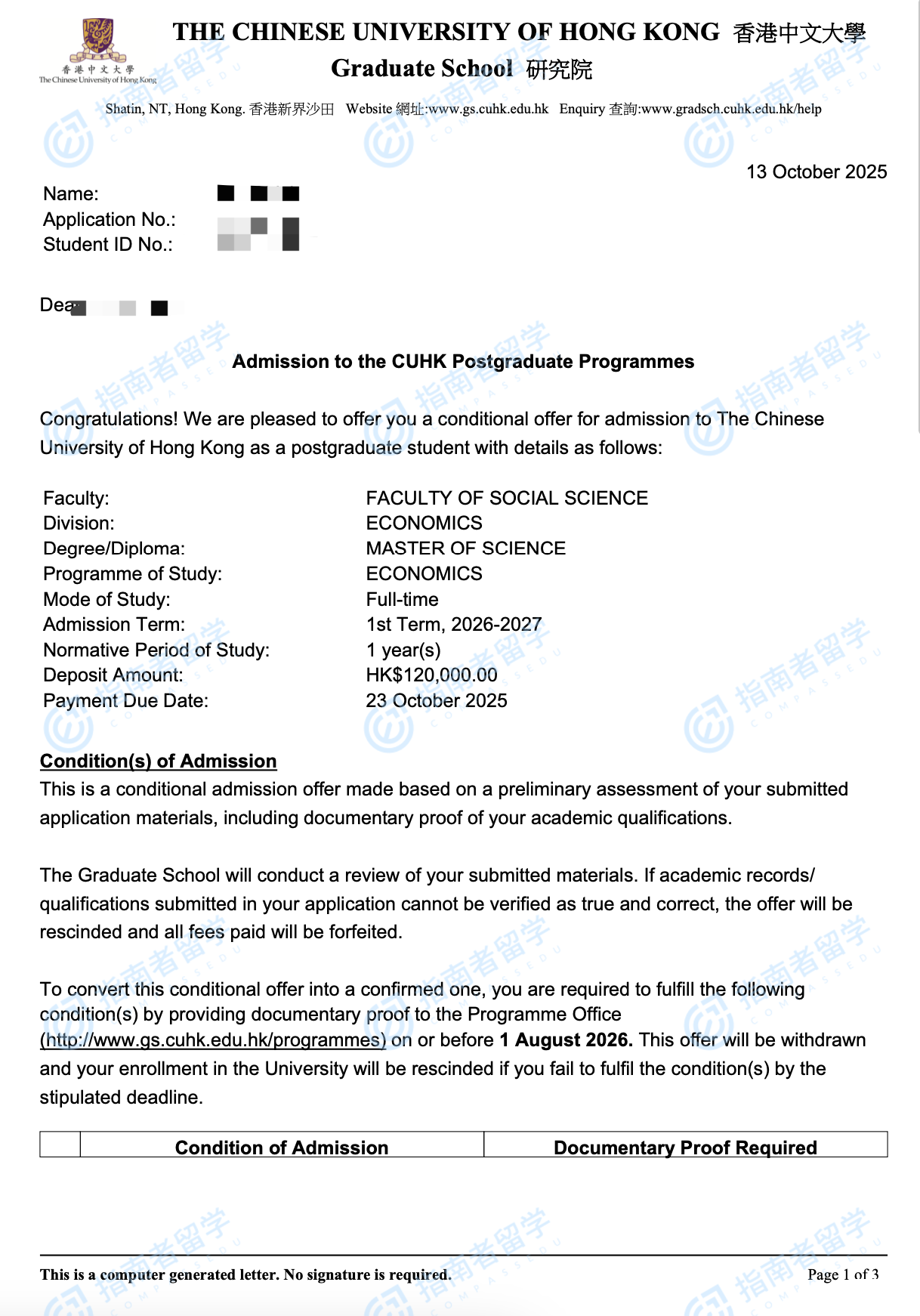 香港中文大學(xué)經(jīng)濟(jì)學(xué)理學(xué)碩士研究生offer一枚