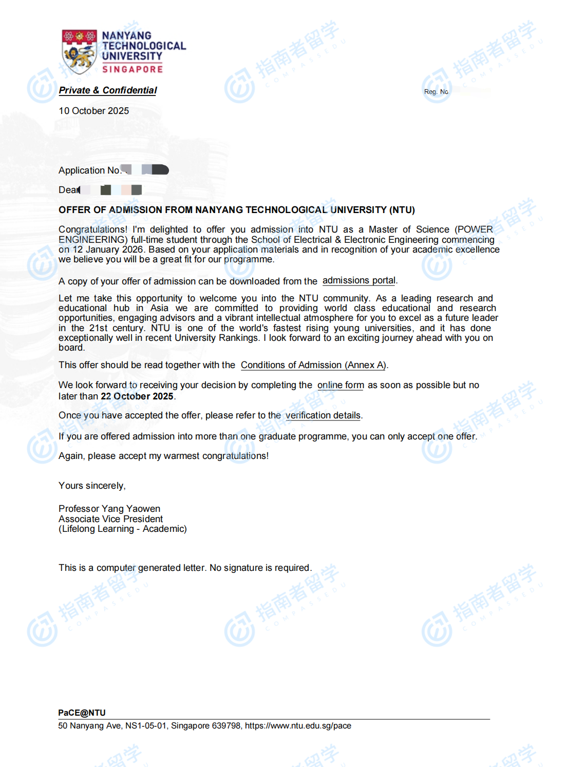 南洋理工大學(xué)電力工程理學(xué)碩士研究生offer一枚