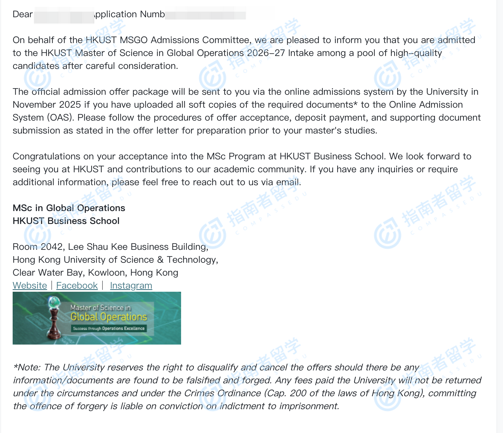 香港科技大學(xué)全球運營理學(xué)碩士研究生offer一枚