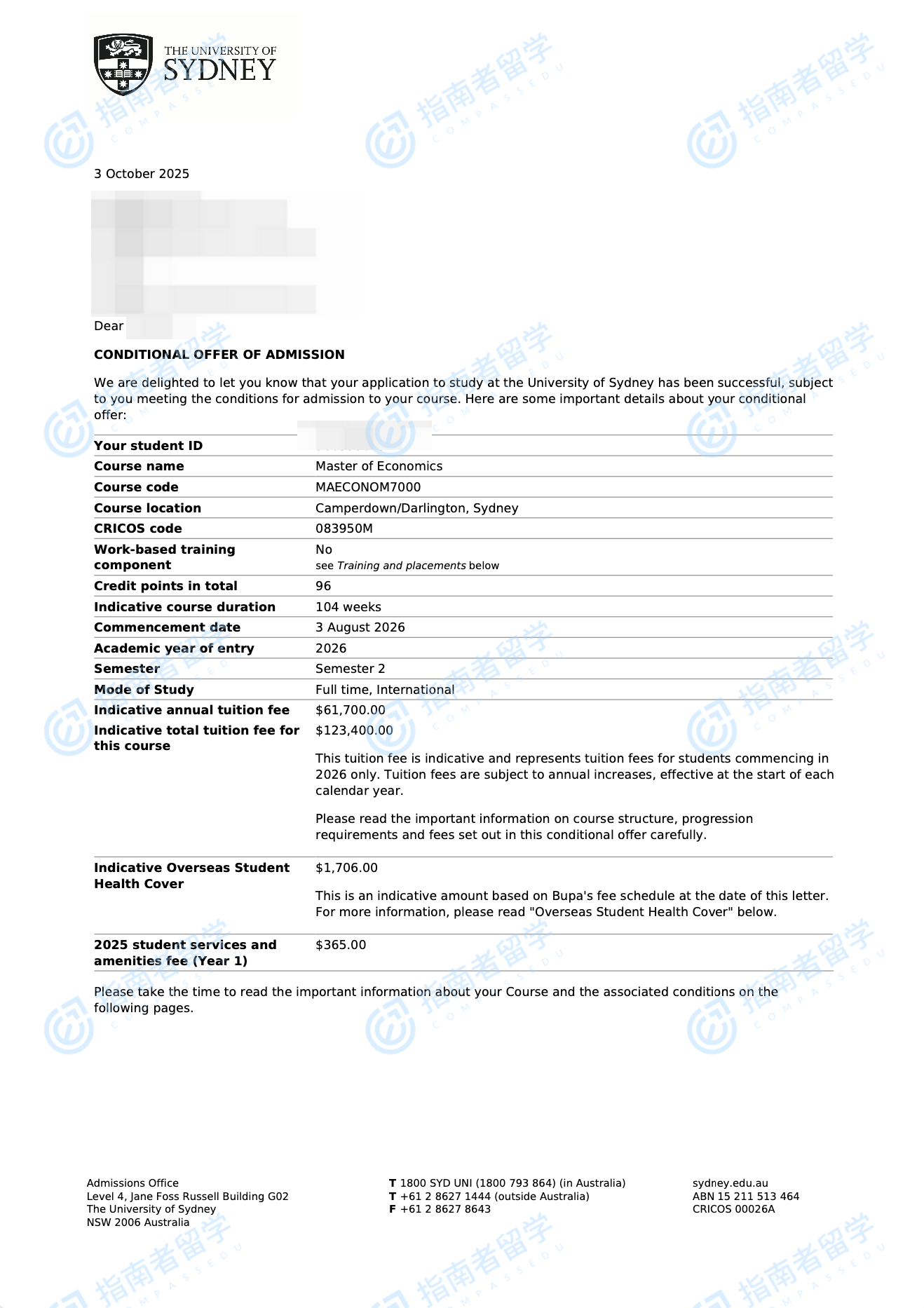 悉尼大學(xué)經(jīng)濟(jì)學(xué)碩士研究生offer一枚