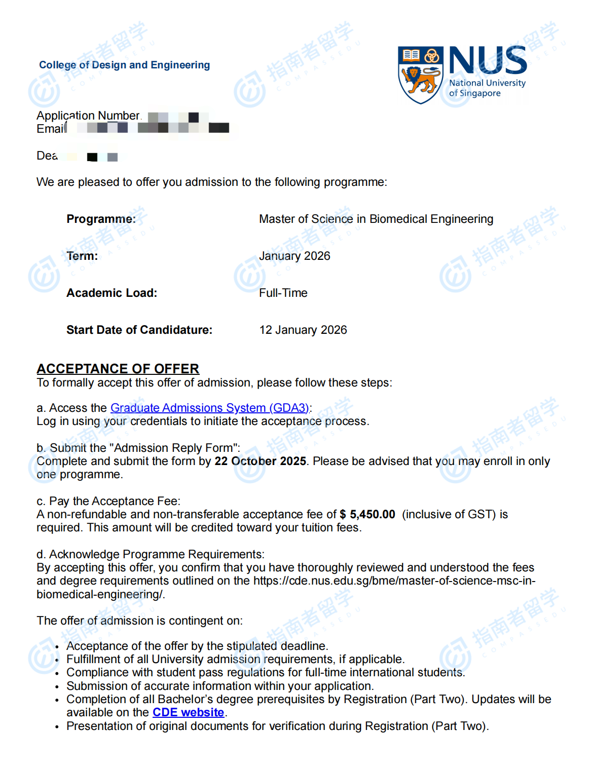 新加坡國立大學生物醫(yī)學工程理學碩士研究生offer一枚