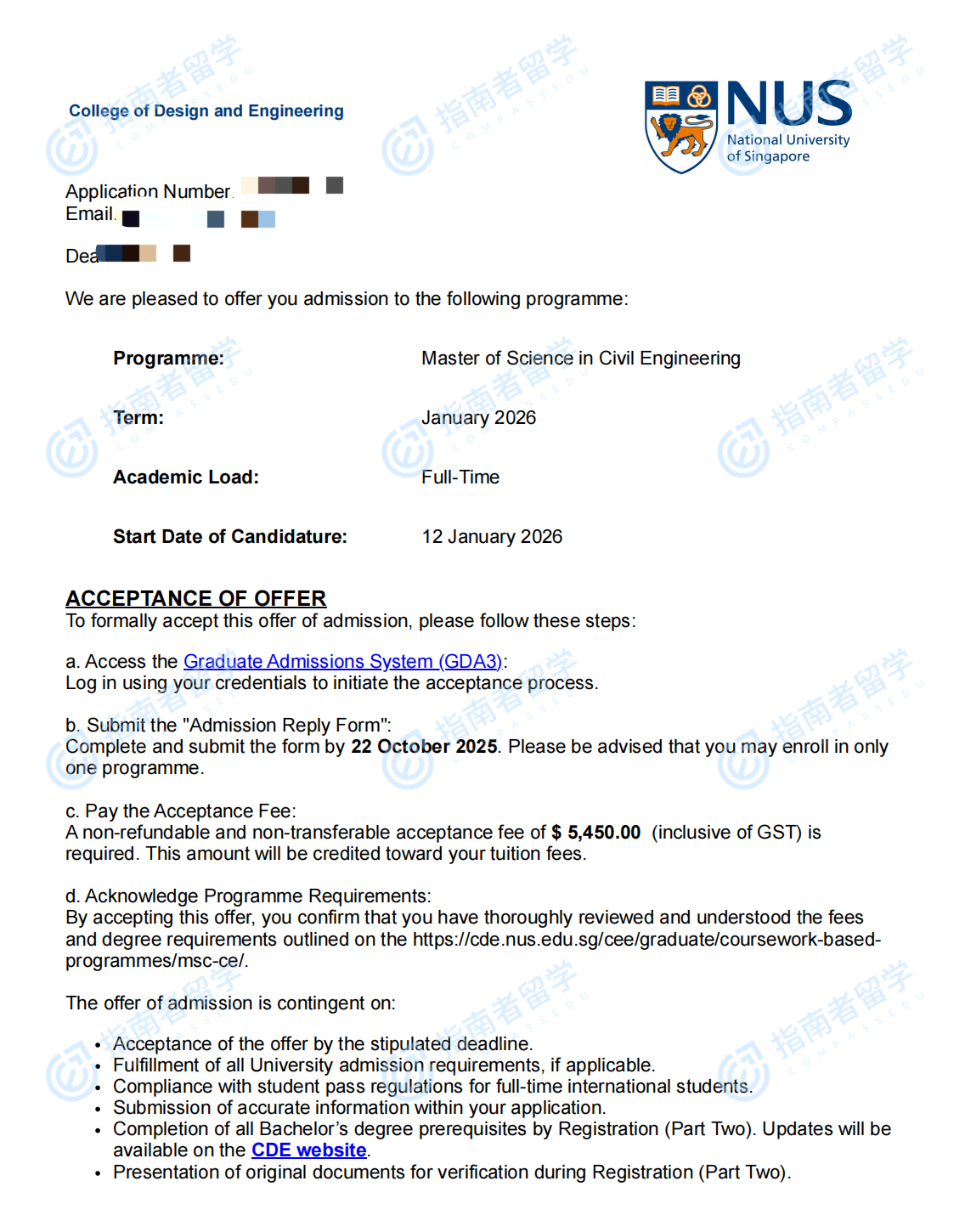新加坡國立大學(xué)土木工程理學(xué)碩士研究生offer一枚