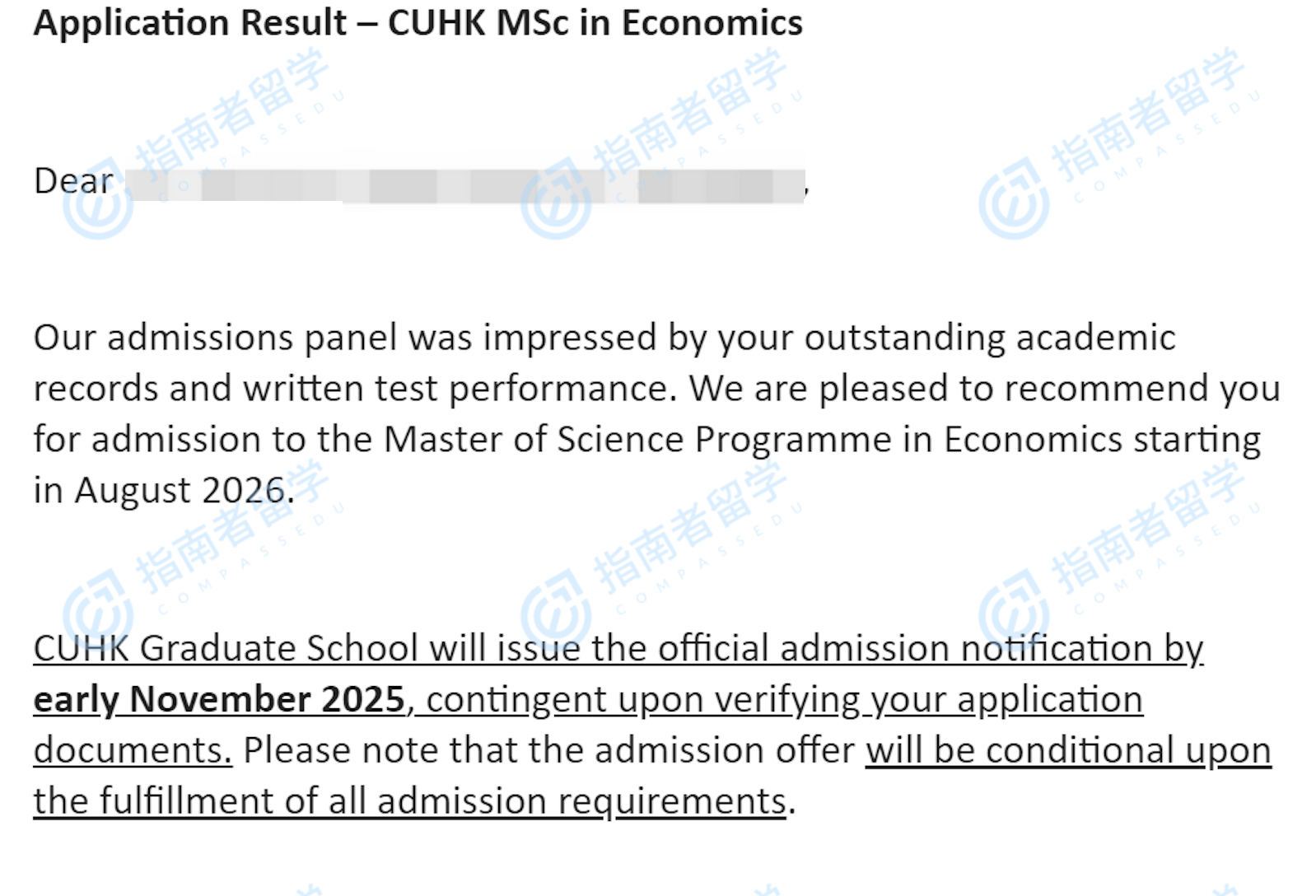 香港中文大學(xué)經(jīng)濟(jì)學(xué)理學(xué)碩士研究生offer一枚